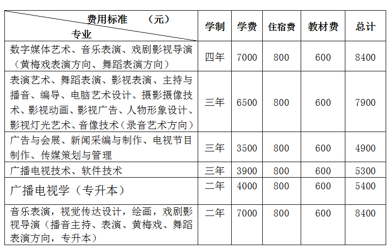 1、所存学杂费总数=学费+住宿费+教材费,各专业学生应交学杂费总额详见下列标准。
