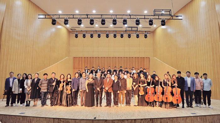 当晚,中法音乐交流活动专场音乐会在学院音乐厅举行。学院党委书记、院长樊嘉禄,副书记沈端良,副院长张建华与学院相关部门负责人及广大师生共同观看了演出。福洛伦丝·卡慈教授甜美而又深沉的声音拉开了音乐会帷幕。音乐会包含独唱、钢琴独奏、单簧管独奏、器乐重奏、交响乐等多种表演形式。由我院青年交响乐团和让·伊夫·阿尔滕布格尔教授共同演绎的管弦乐曲《Carmen Overture》将音乐会推向高潮,音乐会在欢快、高昂的气氛中圆满结束。