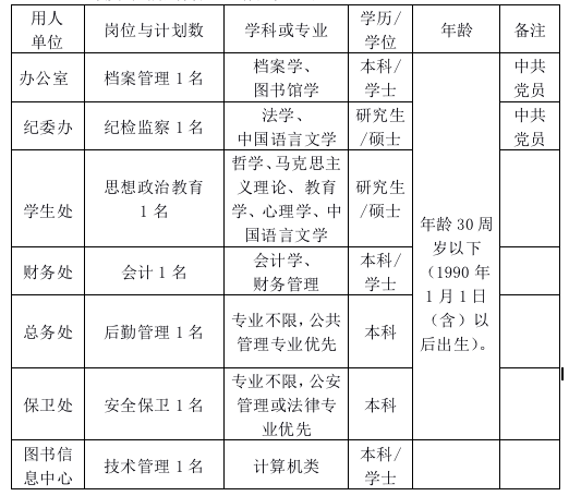 根据学校工作需要,经研究,2020年度公开招聘管理工作人员有关事项公告如下: