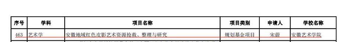 近日,2021年度教育部人文社会科学研究项目评审结果公布,我校美术设计系宋蔚老师申报的“安徽地域红色皮影艺术资源抢救、整理与研究”获得规划基金项目立项,音乐舞蹈系潘捷老师申报的“时白林对黄梅戏音乐的改革创新研究”的获得青年基金立项。