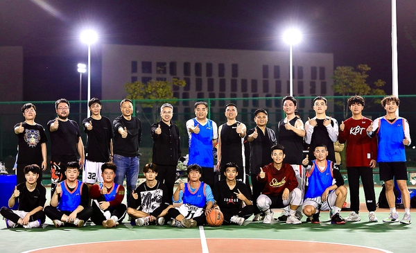 仪式结束后,音乐学院体育俱乐部的学生篮球队与教工篮球队在篮球场进行一场精彩的5V5师生篮球赛。