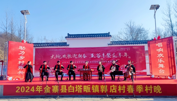春季村晚节目结合乡村文化特色,有黄梅戏、小品、歌舞、快板等。我校音乐学院师生表演了打击乐重奏《龙腾虎跃》、歌曲《等待》《灯火里的中国》、民乐合奏《喜洋洋》《步步高》等精彩的文艺节目。整场活动朴实、有趣,现场气氛热烈,全方位展示了独特的乡村文化,赢得了观众阵阵掌声。