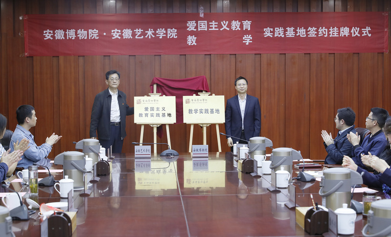 5月13日下午,我校与安徽博物院共建爱国主义教育基地及教育教学实践基地签约挂牌仪式在安徽博物院新馆新安江厅成功举行。校党委副书记、校长樊嘉禄,党委委员、办公室主任曹晓富,行政负责人沈端良,美术设计系党总支书记、主任罗耀东及部分教师代表,安徽博物院党委书记、院长胡敏及相关职能部门领导出席大会。