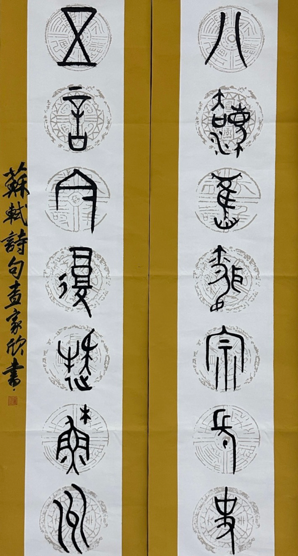 查家欣 《四尺对联金文<答王定>诗句138cm×34cm×2