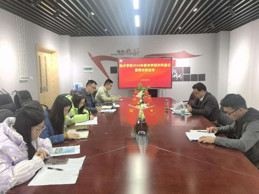 3月27日下午,美术学院在美术楼314会议室召开2024年春季学风建设暨就业推进会,美术学院党总支书记陈明海、副书记李卫国和全体辅导员参会,会议由李卫国主持。