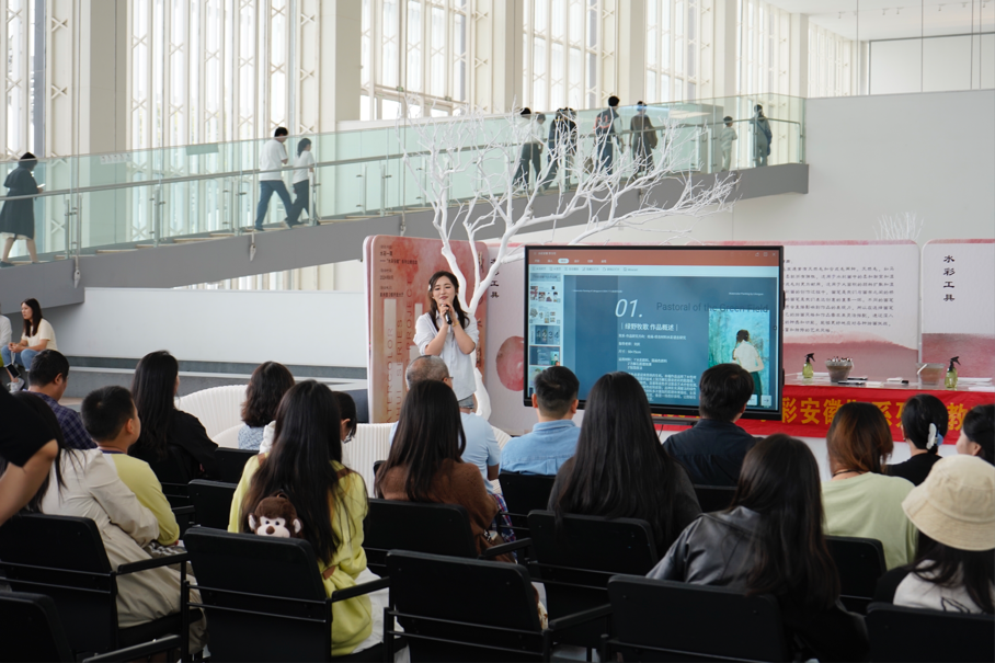 活动现场,刘文杨为入选本次展览的师生颁发入选证书。随后,我校教师刘庆在展览现场为学生和观众做教学点评,点评内容包括美术学院水彩和水性材料教学的课程定位和课程特色。最后环节,美术学院9名参展学生代表作创作分享。