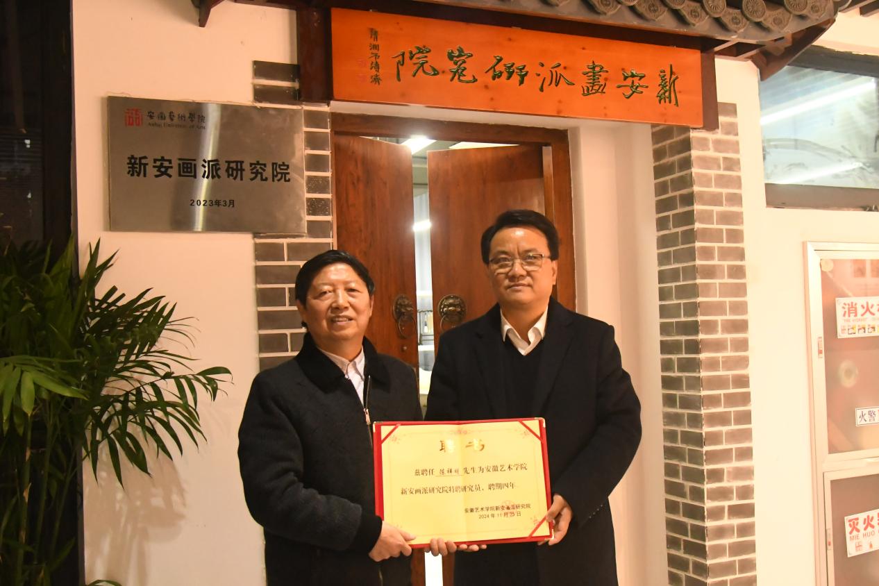 讲座最后,陈教授回答了师生共同关心的若干问题。陈明海书记为陈教授颁发了新安画派研究院特聘研究员证书,并希望陈教授持续关注和指导新安画派研究院的建设和发展,共同为发掘新安画派的当代价值和意义协商共议。