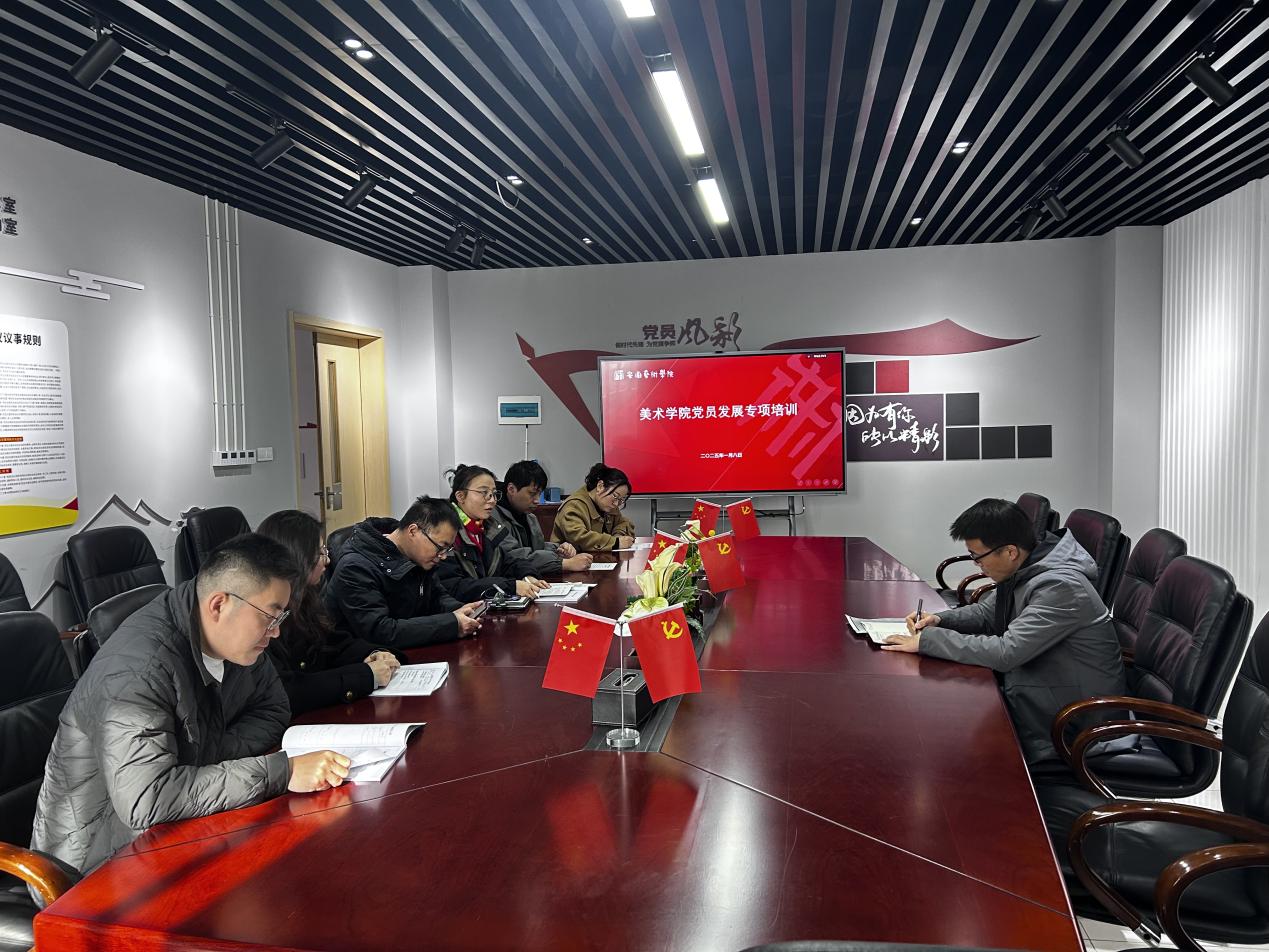 1 8 日,美术学院于学院会议室举行党员发展专项培训会。会议由党总支副书记李卫国主持,学生党支部书记张婷婷主讲,党总支组织员及全体辅导员参会。