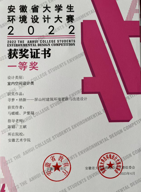 近日,由安徽省教育厅主办,安徽工程大学承办的2022年安徽省大学生环境设计大展公布获奖情况。我院陈娟、王献、魏曼云等教师所指导的学生斩获佳绩。其中马蝶蝶、尹紫凝等同学取得了包括一、二等奖在内的奖项。大赛主委会授予陈娟、王献为优秀指导教师称号。该...