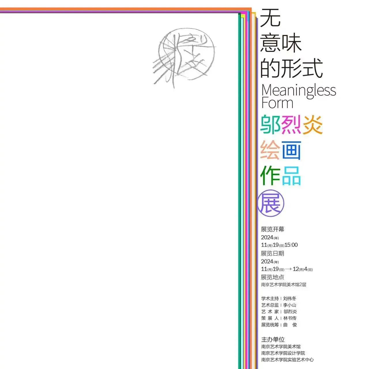 开幕时间: 2024年11月19日 15:00; 展览时间: 2024年11月19日-2024年12月4日; 展览地点: 南京艺术学院美术馆二层、 南京市鼓楼区虎踞北路15号。