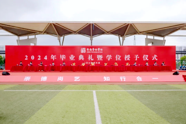 6月25日上午,我校2024年毕业典礼暨学位授予仪式在校运动场举行。校党委书记、学校学位评定委员会主任韩军博士,校党委委员、副校长、学位评定委员会副主任陈林教授,校党委委员、纪委书记程宗林,校党委委员、人事处处长、戏剧学院党总支书记曹晓富,校党委委员、组织部部长王琍琍教授出席典礼。各职能部门、二级学院负责人及一千余名毕业生、毕业生家长、毕业班辅导员、教师代表共同见证这一庄重而神圣的时刻。毕业典礼由校党委委员、副校长柳友荣主持。