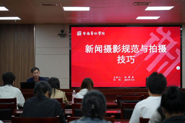 1016日,由校党委宣传部举办的新闻宣传能力提升培训班第三讲在综合楼717会议室举行。次讲座邀请安徽省摄影家协会副主席、安徽日报社视觉新闻中心首席记者徐国康主讲,主题新闻摄影规范与拍摄技巧。党委宣传部长尹广富主持讲座。