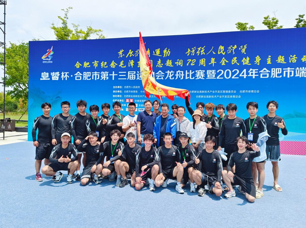 6月10日上午,合肥市第十三届运动会龙舟赛在新站高新区少荃湖鸣鼓开赛,来自全市26支龙舟队伍齐聚少荃湖畔,共同享受龙舟赛的激情与魅力。“文里文气”龙舟队是我校第一支将校队建在二级学院的队伍,学生全部来自戏剧学院。这些充满斗志的队员们凭借着坚定的信念和不懈的努力,在本次龙舟比赛中斩获了二等奖的佳绩,并荣获体育道德风尚奖。